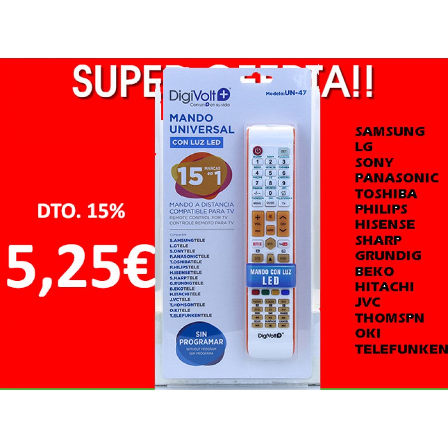 EAN: 8436585690589 - MANDO UNIVERSAL PARA 15 MARCAS